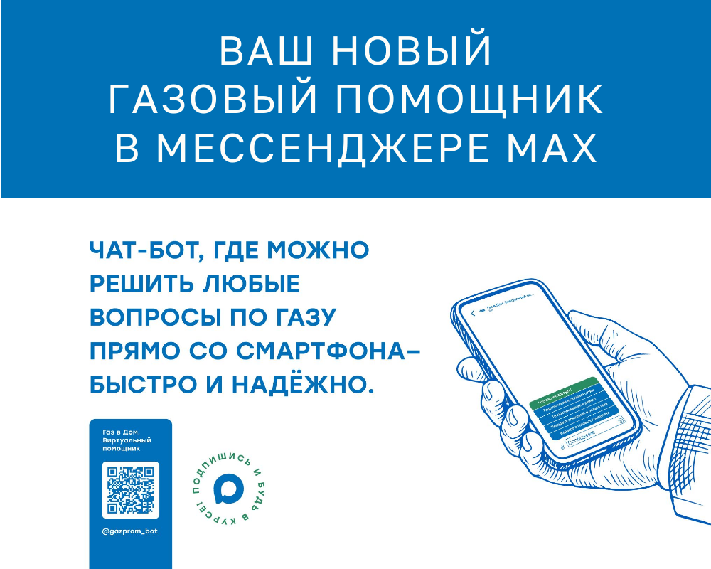 Используйте современные технологии для максимального комфорта. Экономьте своё драгоценное время с чат-ботом «Газ в Дом. Виртуальный помощник» https://max.ru/gazprom_bot