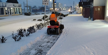 В Тамани полным ходом идёт уборка после ночного снегопада. Очищать проезжую часть дорог и тротуары от снега сотрудники службы благоустройства начали с 5:00 утра.